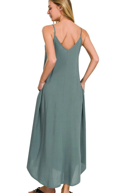 Zenana Summer Energy Woven Arc Hem Cami Dress With Flowy Pockets in Ash Jade