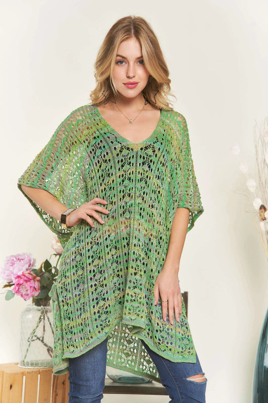 ADORA Feels Like Summer Crochet Cover Up Tunic Top in Green