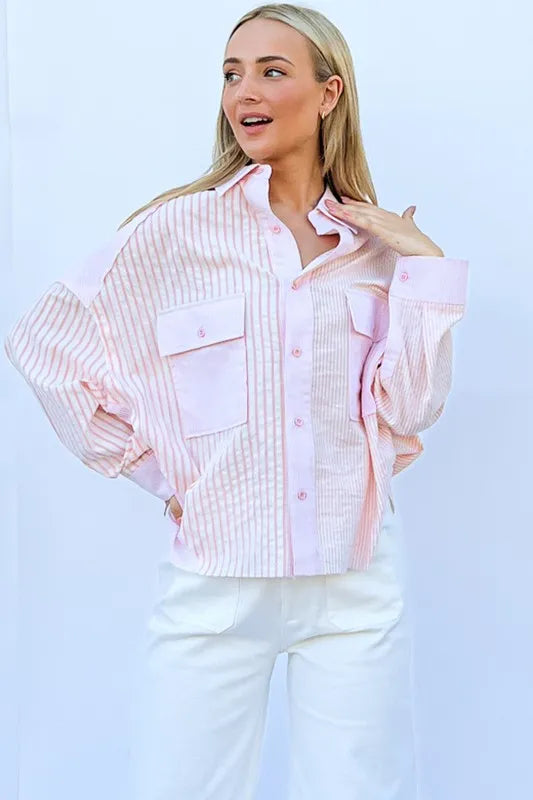 And The Why Bright Start Multi Striped Mix-Match Patched Pocket Shirt