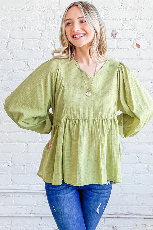 And The Why Be The One Textured V Neck Blouse Top in Light Green