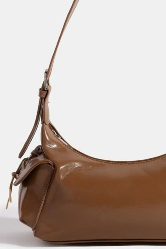 Fame Braided Beauty Accent Double Pocket Shoulder Bag in Brown