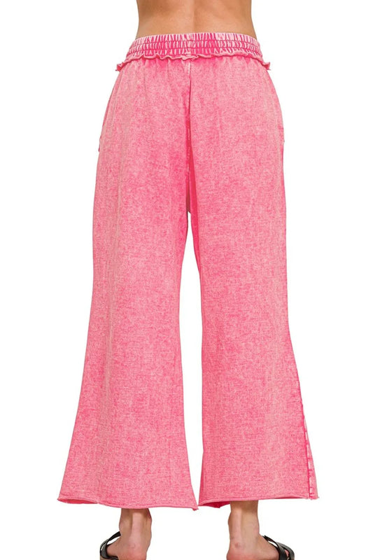 Zenana Easy Street Washed French Terry Palazzo With Pockets in Hot Pink