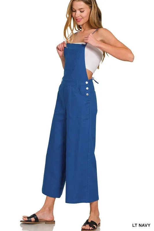Zenana My Vibe Woven Spaghetti Strap Overalls in Light Navy