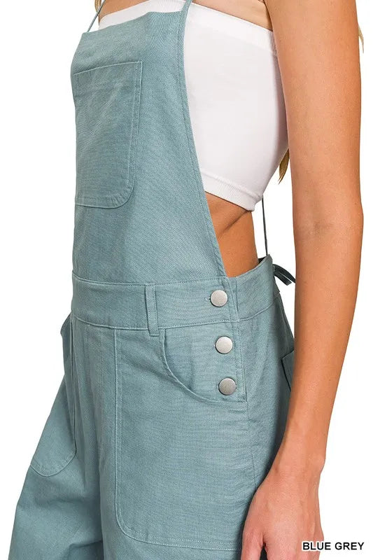 Zenana My Vibe Woven Spaghetti Strap Overalls in Blue Grey