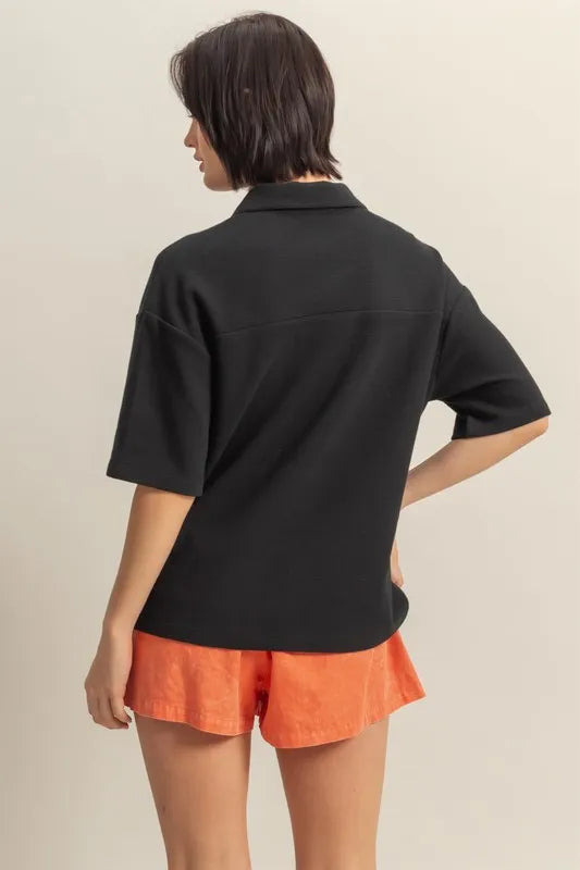 HYFVE Office Vibes Collared Neck Button Down Waffle Shirt in Black