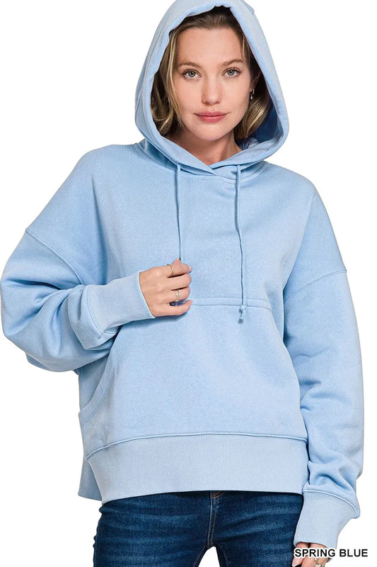 Zenana Snuggle Embrace Oversized Fleece Kangaroo Pocket Hoodie in Spring Blue