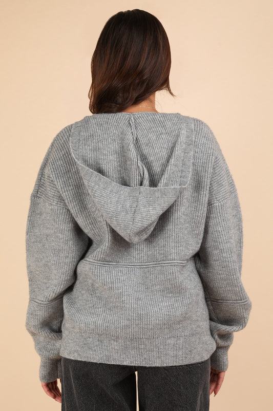 VERY J Keep It Comfy Seam Detail Drop Shoulder Hooded Sweater in Grey