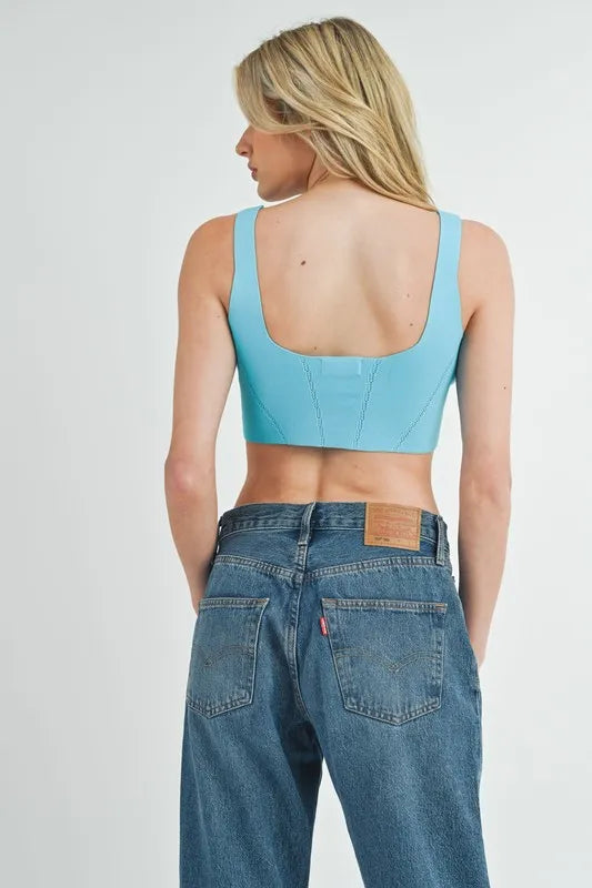 MABLE Corset Energy Design Detail Crop Knit Top in Aqua
