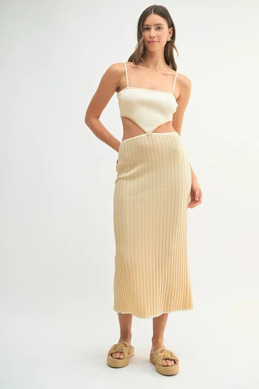 MABLE Exist Loudly Ribbed Knit Color Block Cutout Midi Dress in Light Taupe