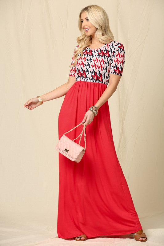 Celeste Dreams and Drama Houndstooth Short Sleeve Maxi Dress