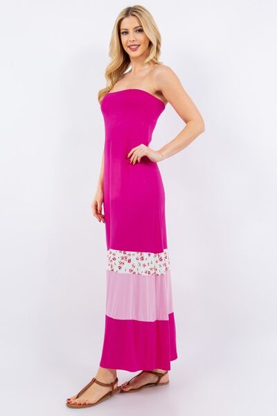 Celeste Ready To Blossom Color Block Tube Maxi Dress in Deep Rose