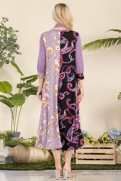 Celeste Happily Ever After Paisley And Floral Contrast Tent Midi Dress in Pink Purple
