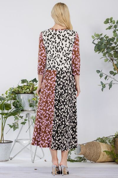 Celeste I Did It For The Memories Leopard Color Block Front Tie Midi Dress
