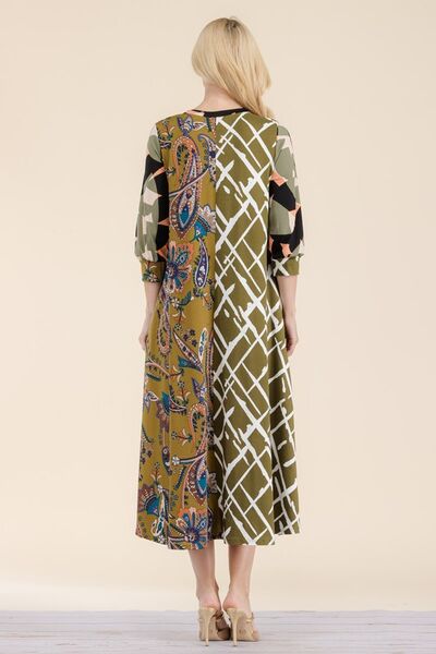 Celeste Happily Ever After Paisley Contrast Tent Midi Dress in Olive