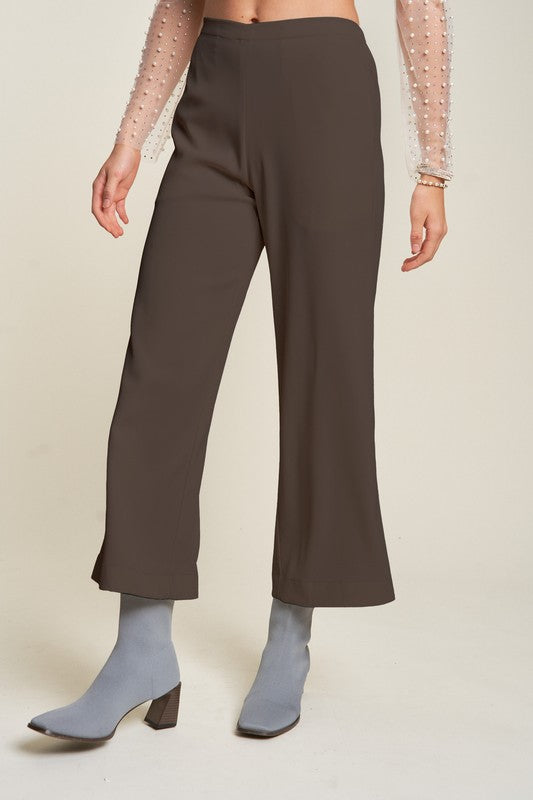 Davi & Dani Wide Awake Wide Leg Mid-Rise Pants in Chocolate